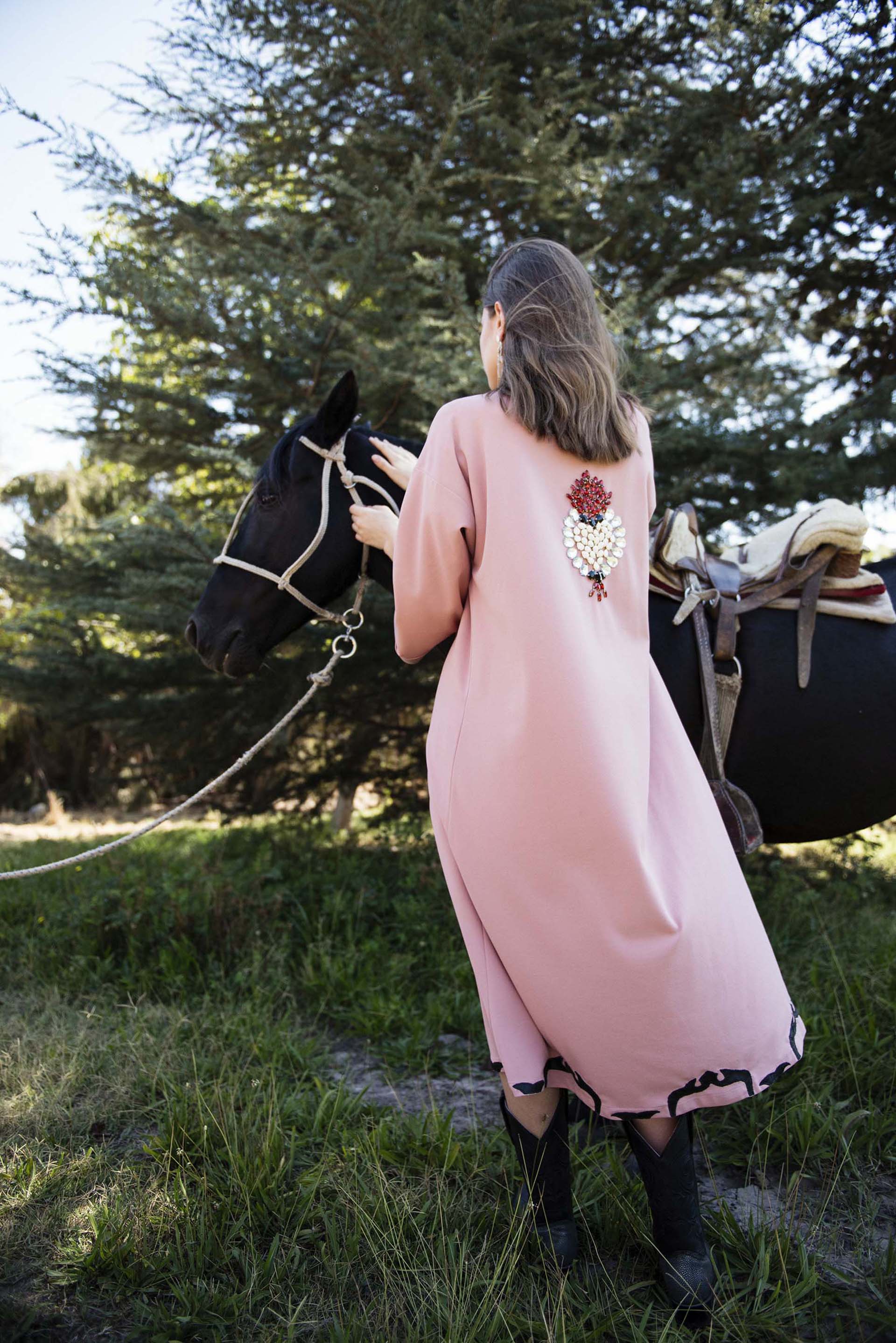 Rosewood tunic. Details of heart-shaped stones embroidered by hand on the back and front left. Unique model, one size.